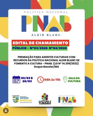 PREMIAÇÃO PARA AGENTES CULTURAIS COM RECURSOS DA POLÍTICA NACIONAL ALDIR BLANC DE FOMENTO A CULTURA - PNAB. (LEI N 14.399/2022)