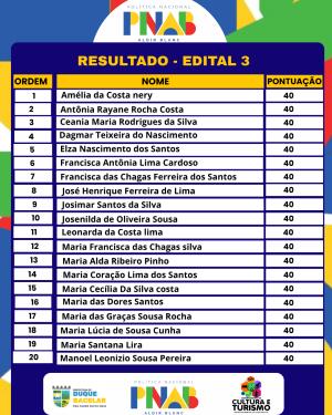 A Prefeitura Municipal de Duque Bacelar, através da Secretaria Municipal de Educação e do Departamento de Cultura, torna público para conhecimento o presente RESULTADO PRELIMINAR DE SELECIONADOS DO EDITAL DE CHAMAMENTO PÚBLICO N° 003/2026 - POLITICA NACIONAL ALDIR BLANC- PNAB – PREMIAÇÃO CULTURAL. LEI Nº 14.399, DE 8 DE JULHO DE 2022 que Institui a Política Nacional Aldir Blanc de Fomento à Cultura, regulamentada pelo Decreto Federal nº DECRETO Nº 11.740, DE 18 DE OUTUBRO DE 2023.